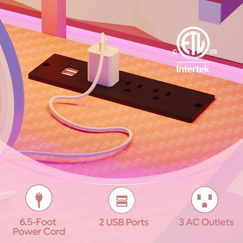 【Reversible Power Outlets】Bestier pc gaming desk is equipped with 3 AC outlets and 2 USB charging ports. Rated Power: 1500W; AC Outlet: 120V/12A; USB Port: 5V 2.2A. This computer desk will provide you with the option of placing the power outlet at the left or right side of the desktop depending to your preference, allowing you to easily charge your phone, speakers, headphones, place of job and gaming devices.
