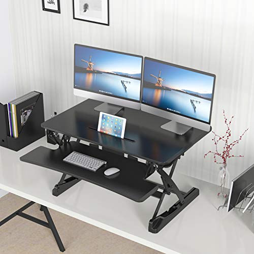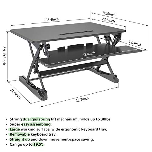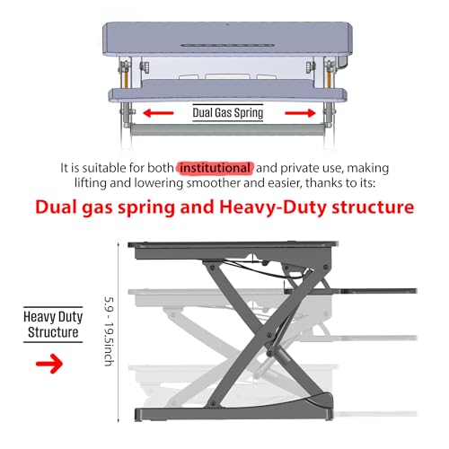 Specification: Desktop Standing Desk Converter | Sit-to-Stand Work Desk Riser | Adjustable from 5.7” to 19.7” | Fits Dual Monitor -Removable Keyboard Tray | Ergonomically