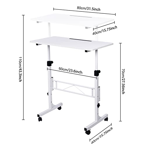 Specification: KLSMYHOKI Standing Desk Adjustable Height, Mobile Stand Up Desk with Wheels Small Computer Desk Rolling Desk, Portable Laptop Desk White Standing Table Home Office Desks 16″x31.5″ Height 27″-43.5″