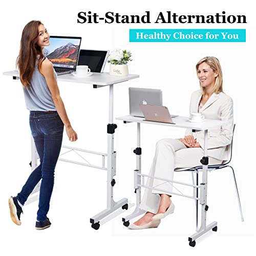KLSMYHOKI Standing Desk Adjustable Height, Mobile Stand Up Desk with Wheels Small Computer Desk Rolling Desk, Portable Laptop Desk White Standing Table Home Office Desks 16″x31.5″ Height 27″-43.5″