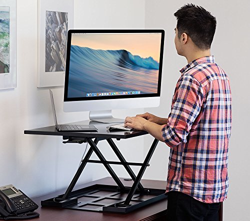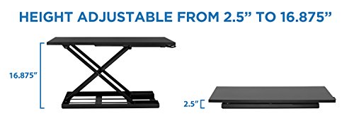 Specification: Mount-It! Standing Desk Converter, Height Adjustable Sit Stand Desk, 32×22 Inch Preassembled Stand Up Desk Converter, Ultra Low Profile Design, Black