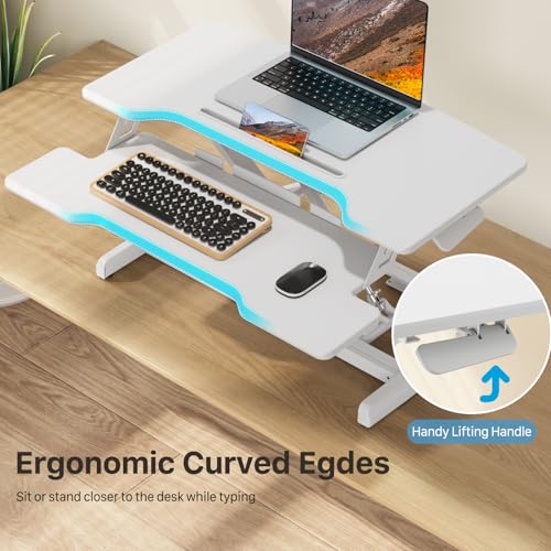 Standing Desk Converter 32 inch, Height Adjustable Sit Stand Desk Riser, Quick Sit to Stand Tabletop Dual Monitor Riser Workstation for Home Office with Keyboard Tray, White