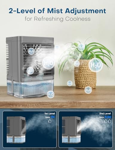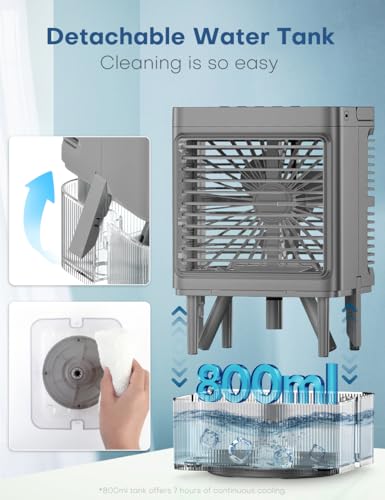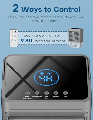 Specification: Personal Air Conditioner w/Remote & LED Screen, 90° Oscillation, 4H Timer, 7 LED Night Light, 2 Cool Mist, 3 Speeds Evaporative Air Cooler, Portable Air Conditioners for Bedroom Desk Camping