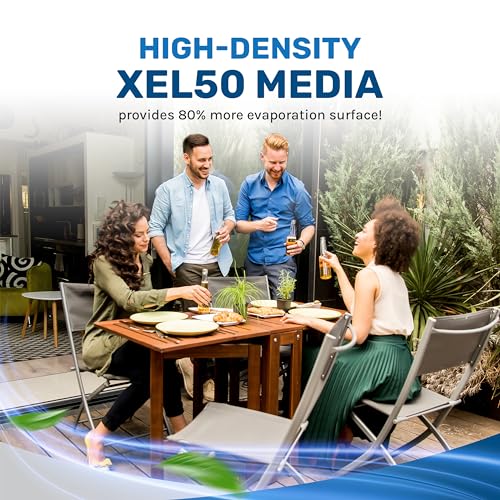 Hessaire’s MC37M is the best and most effective cooling fan in the marketplace for its size. It’s compact and yet packs a powerful blast of cooling with a patented winged prop design and three panels of high-density rigid media. Take it on the go easily with its four casters. It features oscillating louvers to cover a wide area quietly and efficiently. The manual controls make it easy so that you can adjust between the four temperature settings to obtain optimal cooling anywhere you are taking the MC37M Evaporative Cooler.