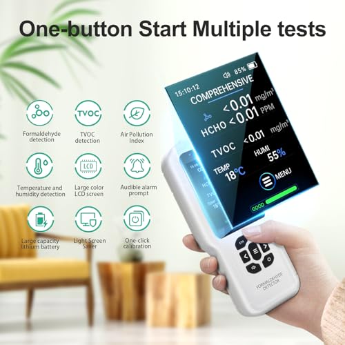 【Wide Application】-JMS17 formaldehyde detector can help us detect bedrooms, living rooms, kitchens, offices, cars, schools, hotels, basements, restaurants, and the like. Please note that this air quality monitor is designed for indoor spaces, so please close the doors and windows before testing. Differently, the data may be inaccurate.