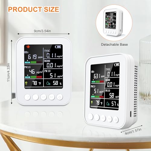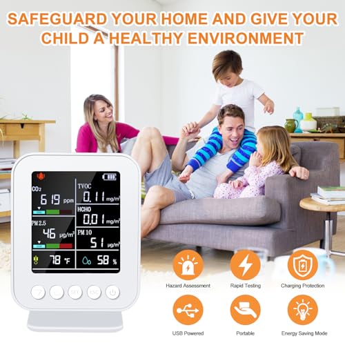 Specification: 7-in-1 Air Quality Monitor Indoor Professional,Portable PM2.5/PM10/CO2/HCHO,Temperature,Formaldehyde Detector,Humidity,TVOC Tester for Indoor Air Pollution Detection