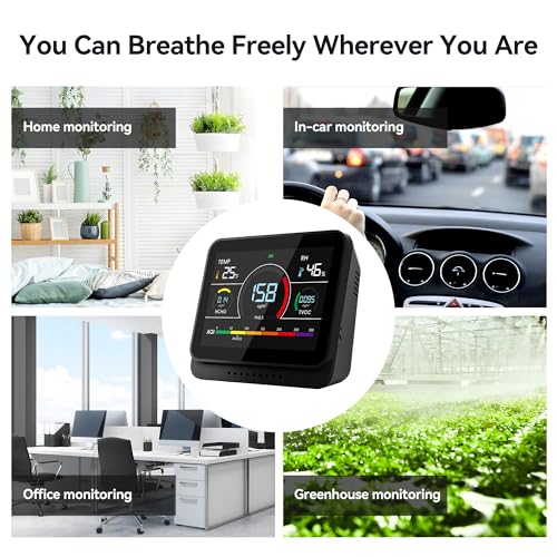 WIDE APPLICATION: With its compact and convenient design, this indoor air quality tester easily adapts to more than a few usage scenarios. Whether in the bedroom, study, kitchen, office, car, school, hotel, bar or campground, this device can correctly monitor air quality. It is suitable for home environments, car interiors, children’s rooms, mother and baby rooms and other public spaces, ensuring you enjoy fresh and healthy air in different environments.