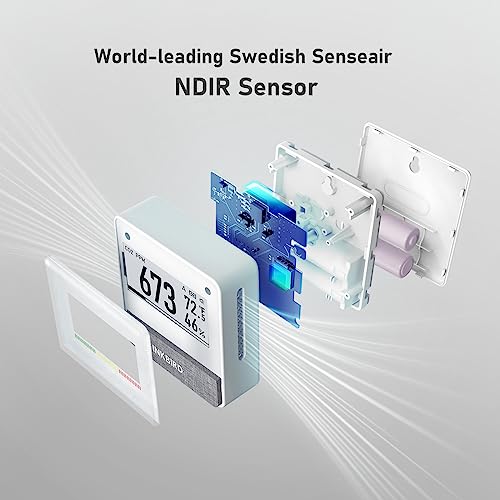 Low-power Electronic Ink Display: Ultra-long battery life for ultra-long protection. This air quality monitor supports full viewing angles display. CO2, temperature, and relative humidity are clear to view