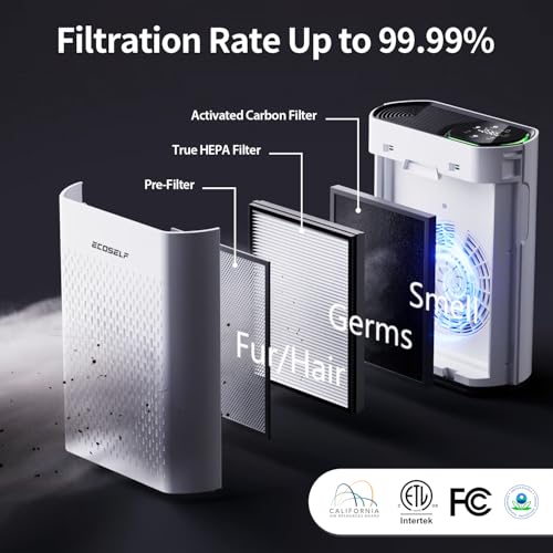 Smart Control: With the free Ecoself app, you can effortlessly manage your air purifier settings, set timers, create schedules, monitor filter life, and connect to third-party voice assistants. Enjoy the convenience of controlling your air quality right from your smartphone!
