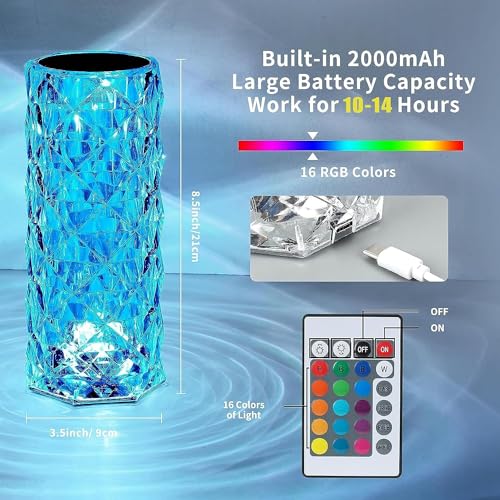 Specification: Crystal Table Lamp, Remote and Touch Control Rose Wave Lamp, RGB Color Changing Night Light, Dimmable, USB Rechargeable Decoration Ambient Lighting for Dinner/Bars/Game room/Living Room/Bedroom