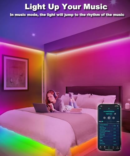 Specification: LED Strip Lights for Bedroom 33 FT, IC-RGB LED Lights for Room with Remote Bluetooth APP Control, USB LED Light Strip for Ambient Lighting Room Decor Christmas Halloween