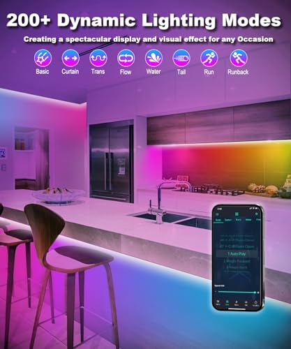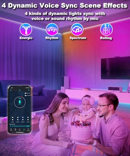 Dynamic Mic Modes:With built-in mic,the led strip lights will change colors and dance to the rhythm of music or surrounding sounds,bring you a More cheerful and dynamic lighting experience.If you end up watching movie, dancing, having party, or playing games, just select Mic mode.There could also be style mode which 200+ flickering light ambience brings you a more calm and pleasant mood, a good selection for your room decor, right?
