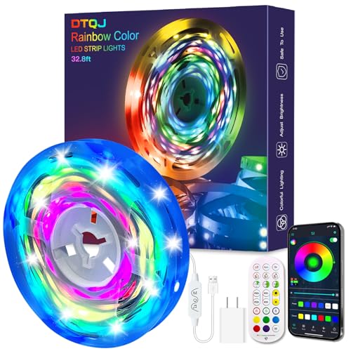 Dual Visual LED Lights:With 16 million solid color choices and 200+ dynamic flashing rainbow color lighting effects, our DTQJ ICRGB LED strip lights will bring fancy mood lighting to your movie, party, Gaming and any lighting needs of your room! LED lights suitable for bedroom, living room, home theater, room decorations, party and holiday celebrations like Halloween and Christmas as indoor room lights.