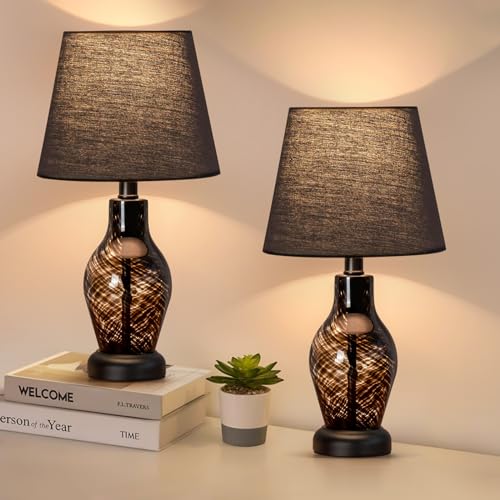 Specification: ONEWISH Small Bedside Table Lamp Set of 2, Wine Bottle Shape Glass Body, Warm Ambient Lighting, Bulb Included, 14″ Height, Black