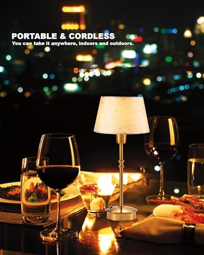 Specification: Rechargeable Cordless Lamp with Dimmer, 5200mAh Battery Ambient Lighting for Restaurant Bar Dining Table, Small Portable Table Lamp for Patio Side End Kitchen, Warm Touch Bedside Lamp, Antique Brass
