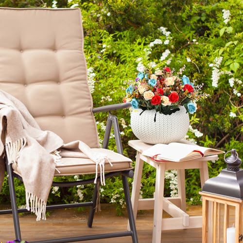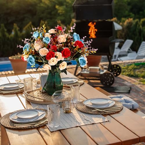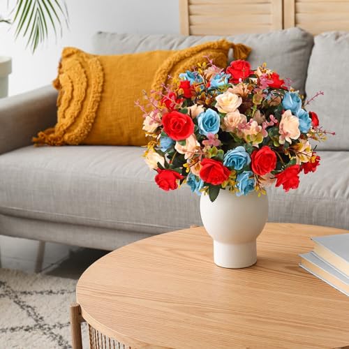 EverWin Artificial Silk Flowers Bouquet Mini Small Roses for Decoration Fake Faux Colorful Flowers with Stems for Home Decor Indoor Outdoors Wedding Arrangement Table Centerpieces – 4 Bundles
