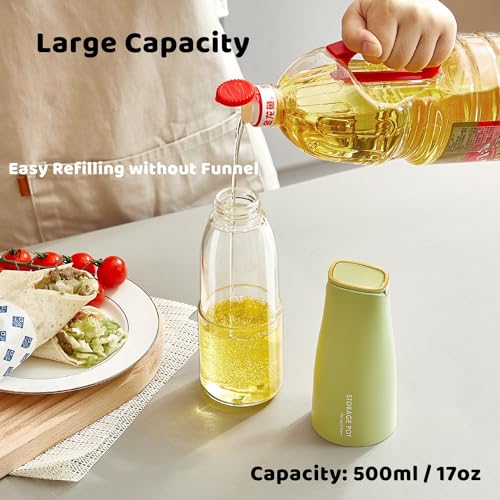 Auto Flip Olive Oil Dispenser Bottle for Kitchen, 500ml/17oz Glass Cooking Oil Container With Automatic Cap and Stopper, Non-Drip Spout, Soy Sauce, Vinegar Condiment Dispenser Container