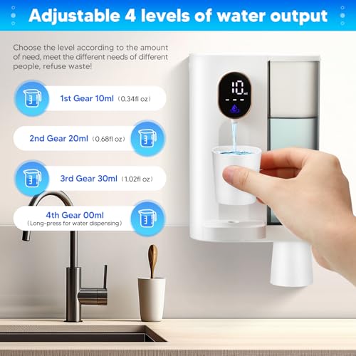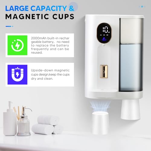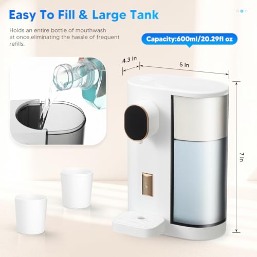 Specification: Automatic Mouthwash Dispenser for Bathroom,20.29 Fl Oz Smart MouthWash Dispenser for Kids and Adult with Magnetic Cups, 4 Dispensing Levels,LED Screen,Wall Mounted Dispenser,USB Rechargeable