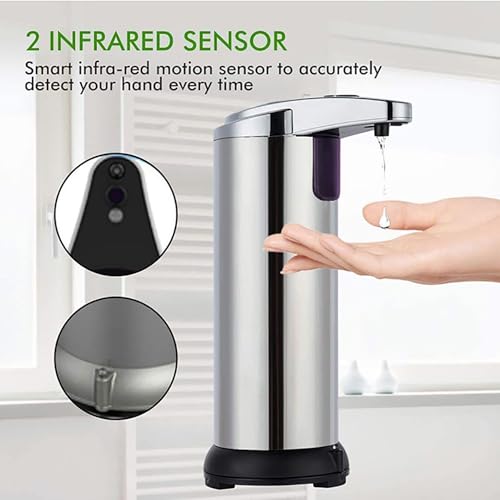 Specification: Automatic Soap Dispenser, Stainless Steel Dish Soap Dispenser with Infrared Sensor and Waterproof Base, 3 Levels Adjustable, Touchless Sensor Soap Dispenser for Bathroom Kitchen Hotel Restaurant