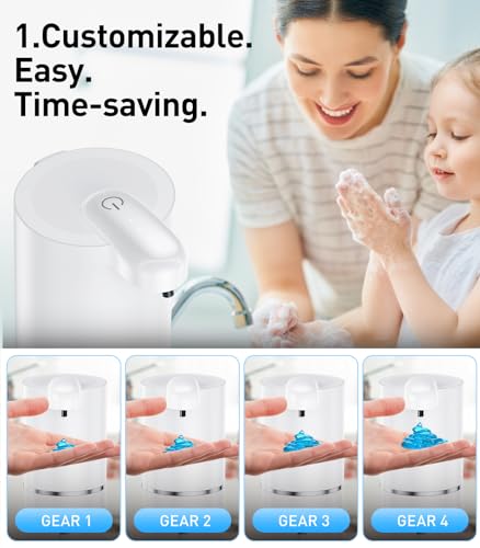 Customizable Dispensing with 4 Gear Settings: Benefit from the keep watch over of dispensing soap with a simple button press, offering four adjustable settings from 0.25 seconds to 2 seconds. The IPX5 water-resistant technology ensures the battery compartment is secure, enhancing the product’s durability and lifespan against soap and water damage.