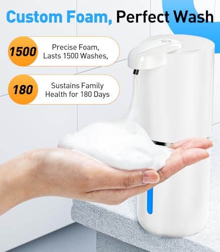 Long-Lasting Battery with Quick USB-C Charging: Our electronic soap dispenser is upgraded with a lithium battery for a safer and more eco-friendly option. The 1200 mAh battery ensures 4-5 months of use per charge (with 3 day by day uses), minimizing the need for frequent battery changes.