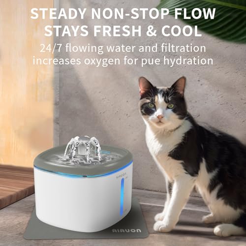 Cat Water Fountain 84oz/2.5L – Automatic Pet Fountain & Dog Water Dispenser with Replacement Filters & Feeding Mat for Cats, Dogs, Multiple Pets (Light Gray)