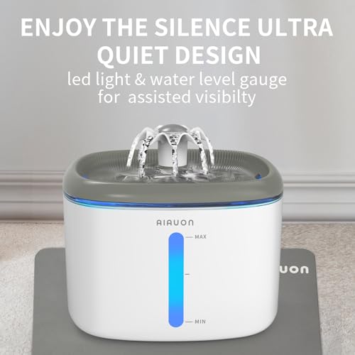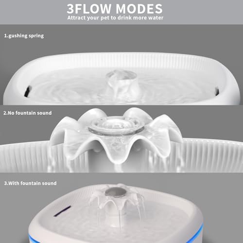 3 Drift Modes: The AIAUON Pet water dispenser offers 3 drinking modes: flowing water with sound, flowing water without sound, and a bubbling fountain mode. The moving water stream not only attracts your pet’s interest but in addition encourages them to drink more, promoting their health.