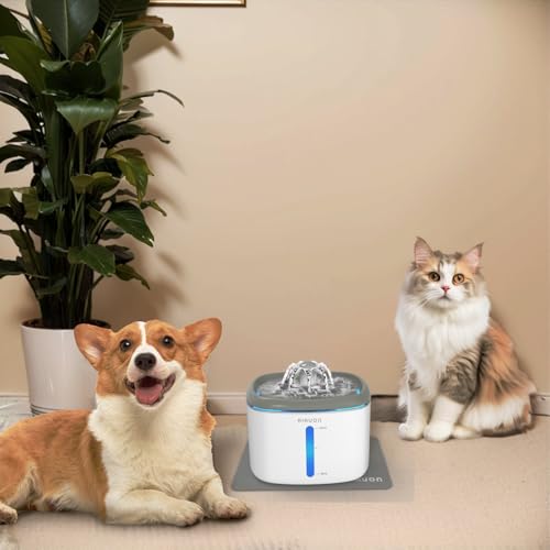 Specification: Cat Water Fountain 84oz/2.5L – Automatic Pet Fountain & Dog Water Dispenser with Replacement Filters & Feeding Mat for Cats, Dogs, Multiple Pets (Light Gray)