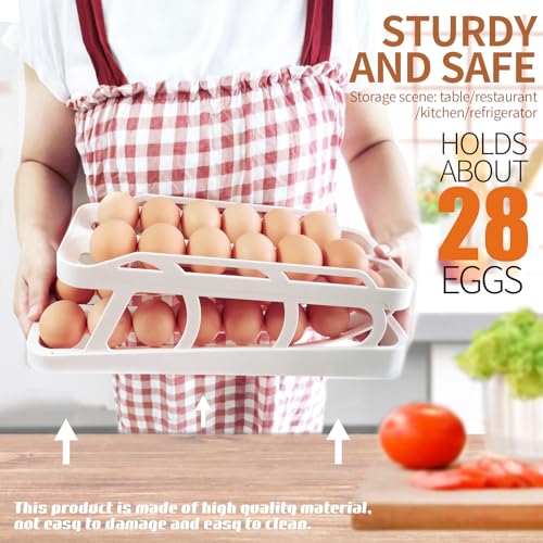 Egg Holder for Fridge, Automatic Rolling Egg Organizer Storage for Refrigerator, 2 Rows Space-Saving Eggs Dispenser, Large Capacity 28 Eggs Container & Tray for Kitchen (2 Layer,White)