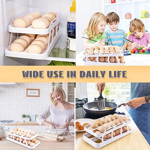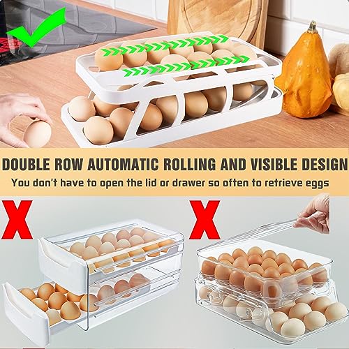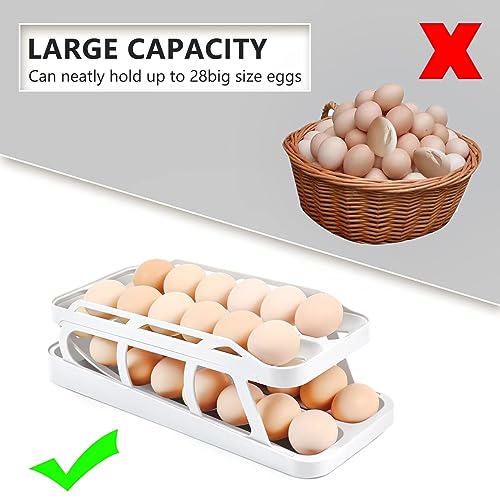 Egg Holder for Refrigerator,2 Tier Rolling Egg Dispenser 28 Eggs Storage,Automatic Egg Roller Refrigerator container & organizer Save Space for Fridge & Countertop