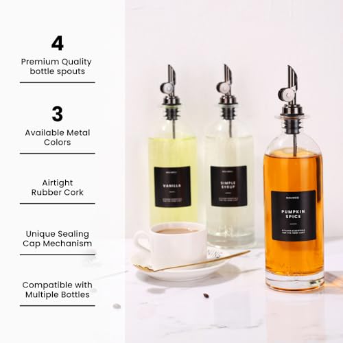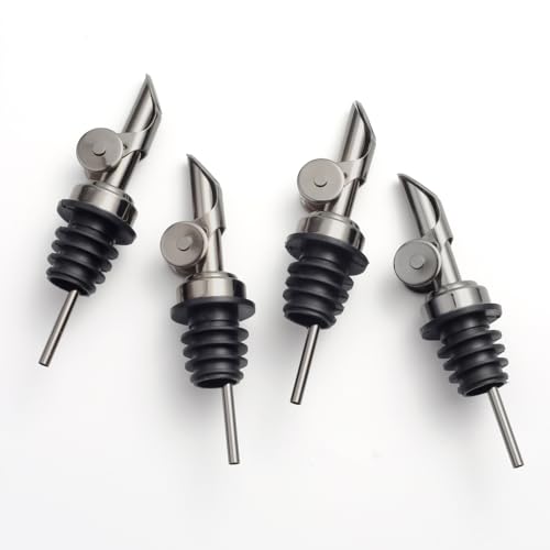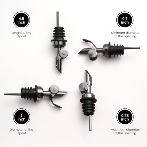 Specification: Molimoli Liquor Pour Spout Made of Stainless Steel with Automatic Anti-Oxidation Mechanism, Bottle Pourers for Alcohol, Olive Oil Dispenser Spout, Wine Pourer Spout, Oil Bottle Spout, 4-Pack, Black