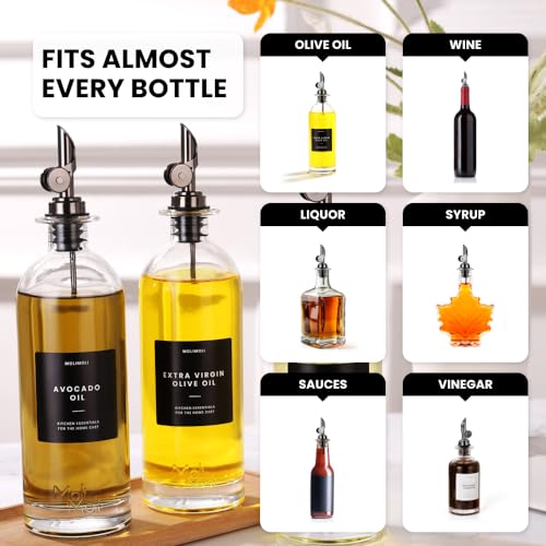 UNIVERSAL FIT: MoliMoli versatile pour spout fits a diverse array of bottle sizes as it may be used to pour liquor bottles, and olive oil. It is designed for seamless use with liquor bottle pourers, oil pour bottle, and wine pourer. Ideal for both home and professional settings.