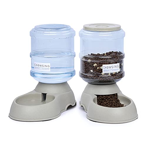 Nourse CHOWSING Automatic Cat Feeders and Waterer Dispenser 1 Gallon Capacity in Sets Gravity Replenishes Food and Water Suitable for Pets Such as Cats and Dogs