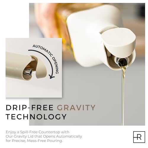 Drip-Free Gravity Technology: The gravity lid technology allows mess-free and precise pouring, reducing the risk of accidental spills. The olive oil bottle lid opens automatically when you tilt the bottle, making every pour both effortless with one hand and less messy.