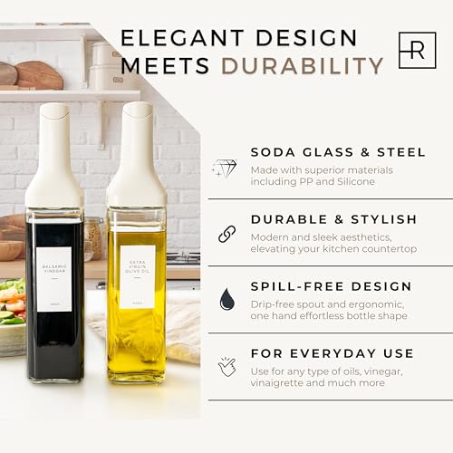 Incredibly Versatile: The olive oil and vinegar dispenser bottle set is super versatile and easy to refill thanks to the wide-mouth design. Leakproof and reliable, these bottles can be utilized for many types of oils, including olive oil, sunflower oil, sesame oil, vegetable oil in addition to vinegar, vinaigrette, and a lot more.