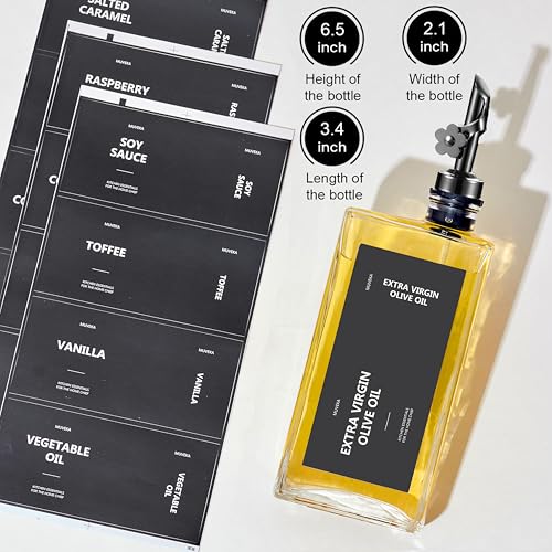 【Thoughtful Design & Effortless Convenience】: Every oil and vinegar dispenser bottle set comes with 2 olive oil dispenser bottles, 2 weighted self-closing spouts, 1 collapsible funnels, 1 cleaning brush and 40 labels. The oil dispensers for the kitchen are also practical for holding or dispensing oil, vinegar, soy sauce, cooking wine, or mouthwash. This 2 pack oil dispensing set meets most of your daily needs and is prefect to share with your friends and families.