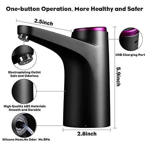 Specification: Water Bottle Pump 5 Gallon Water Dispenser, Water Pump for 5 Gallon Jug USB Charging, Automatic Drinking Water Dispenser Pump, Portable Electric Water Dispenser for 2-5 Gallon Bottle, Black