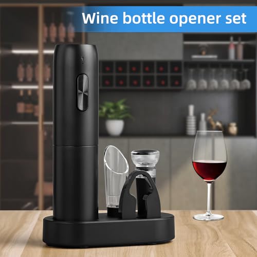 Wine Opener Electric Wine Bottle Openers Electric Wine Openers Set with Rechargeable Base Automatic Wine Opener Rechargeable with Foil Cutter Vacuum Preservation Stoppers Wine Dispenser Storage Base