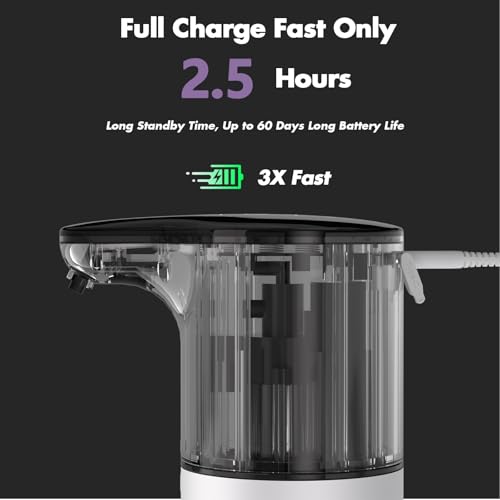 【Super Long Battery Life】This Hand soap dispenser is powered by a 2000mAh lithium battery and is compatible with USB-C and C-C charging. It may also be used at the same time as charging and can be utilized for 60 days when fully charged. This soap dispenser not only saves you money Money is a long-lasting and environmentally friendly investment.