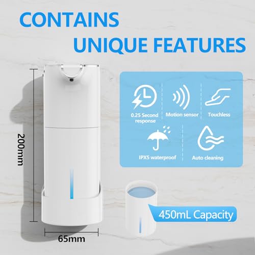 Specification: YIKHOM Automatic Liquid Soap Dispenser with Auto Clean, Digital Display 15.37 oz Touchless USB Rechargeable Soap Dispenser, Wall Mounted 7 Levels Adjustable Soap Dispenser Pump for Bathroom, Kitchen