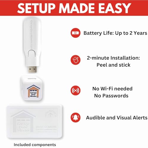 Specification: Garage Door Minder® Version II. 100% Wireless. Installs in Two Minutes! No Wi-Fi. in-Home Monitor & Alert System. Great for Seniors!