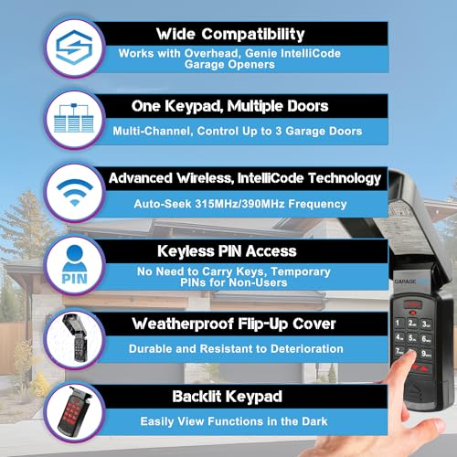 Secure and Safeguarded: Keypad garage door opener, advanced security mechanisms work with Genie Intellicode garage door remote technology featuring auto are seeking dual capabilities 315 or 390 Mhz frequencies, mitigating potential interference for uninterrupted protection even as prevents Get admission to to your garage by unauthorized persons. Genie garage door opener remote.