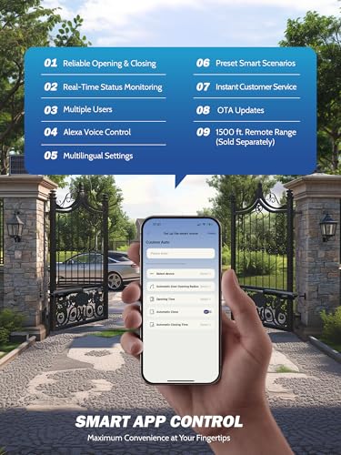 Zumi-Exclusive Security: Our automatic gate opener uses exclusive 128-bit rolling code technology to verify activation only by authorized remotes, keypads, and vehicle sensors, with real-time gate status monitoring throughout the app for enhanced 24/7 home protection