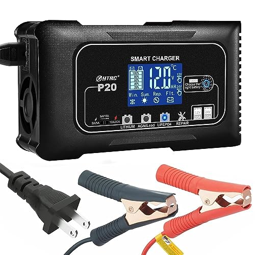 Specification: 20Amp Lithium Battery Charger, 12V and 24V, Lifepo4, Lead-Acid (AGM/Gel/SLA.) Car Battery Charger, Maintainer Cycle Charger Trickle Charger Battery Desulfator for Boat, Motorcycle, Golf Cart