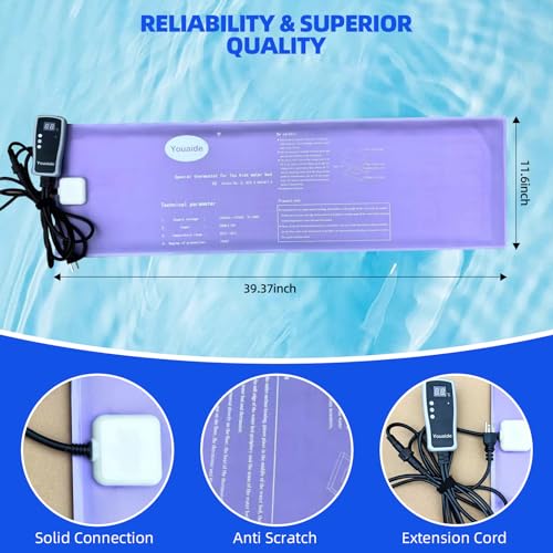 【Widely Applicable】: The waterbed heater with digital display is suitable for California king, full size, double waterbeds and all hard-side and soft-side waterbeds. This adjustable waterbed heater is easy to use and you’ll set it to the exact temperature you need.