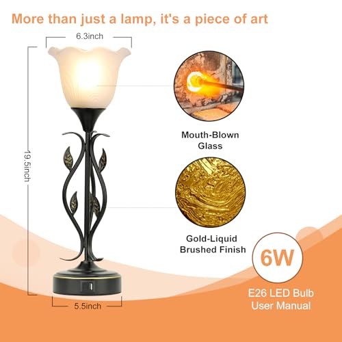 [Unique Torchiere Table Lamps] The bedside lamps are equipped with black climbing vines, copper rubbed rustic Leaf and a white upward flower glass shade which inspires by nature flower and torchiere, adding a rather Art-Deco feel alongside the decoration of your house. This end table lamp can let your room looks more upscale.