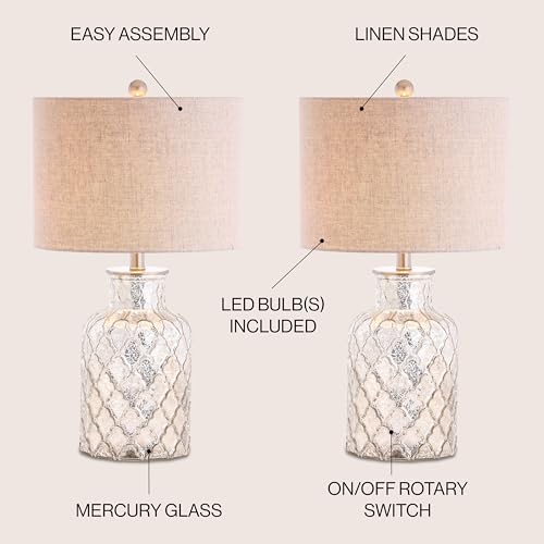 Specification: JONATHAN Y JYL1075A-SET2 Set of 2 Table Lamps Alvord 24.5″ LED Glass Table Lamp Contemporary Bedside Desk Nightstand Lamp for Bedroom Living Room Office College Bookcase, Mercury Silver