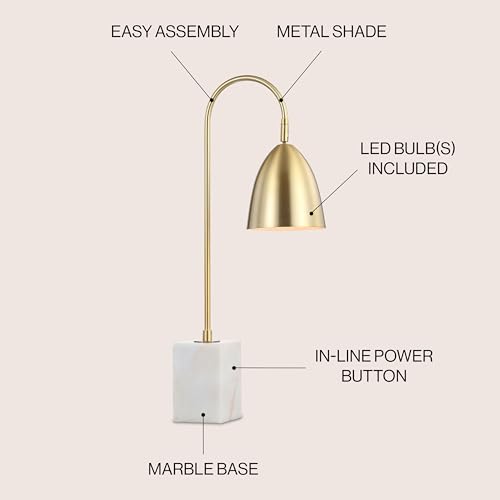 JONATHAN Y JYL1092A Ana 26″ Gold Arched Metal with Marble Base LED Table Lamp Classic Glam Bedside Desk Nightstand Lamp for Bedroom Living Room Office College Bookcase, Brass Gold/White