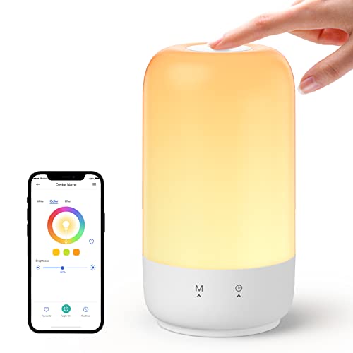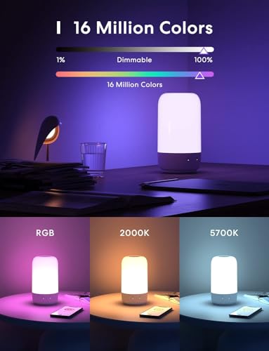 Touch Keep an eye on: Upgraded buttons—Touch Keep an eye on on the top of the smart nightstand lamp to light up or off, change colors, adjust brightness and resetting