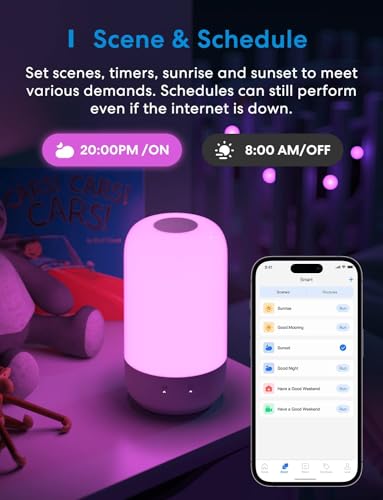 Voice Control:Compatible with Apple HomeKit (iOS 13.0 or later), Apple Watch, Siri and Amazon Alexa. Both you and kids can easily control table lamp with voice commands. (e.g. ‘Hey Siri, set the lamp to green’). This smart lamp for kids is a great gift for your child